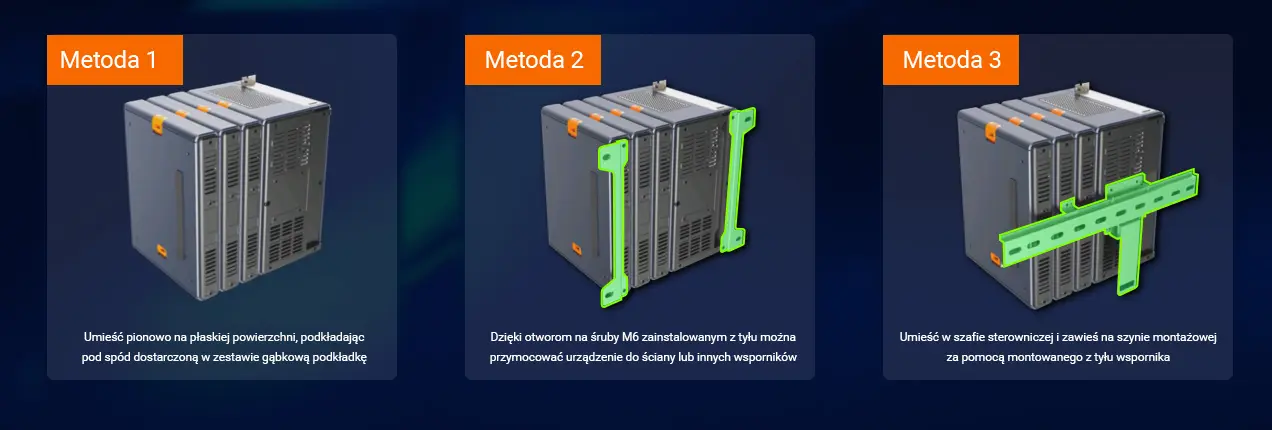 Urządzenie charakteryzuje się doskonałą wydajnością odprowadzania ciepła. Kontroler jest kompaktowy, dzięki czemu można go zainstalować tam gdzie występują ograniczenia przestrzenne. Dodatkowo oferuje różnorodne metody instalacji, umożliwiając użytkownikom wybór odpowiedniej do potrzeb.