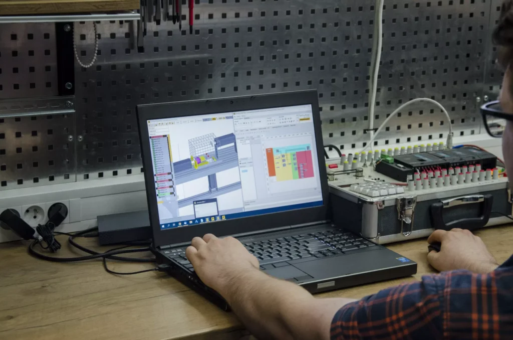 Bezpłatne oprogramowanie na komputerze PC umożliwia testowanie systemu w wirtualnej wersji w 3D bez konieczności zakupu sprzętu (cyfrowy bliźniak). Import brył 3D z programów CAD umożliwia testowanie własnego stanowiska produkcyjnego. Zaawansowane oprogramowanie umożliwia symulacje z wykorzystaniem fizyki ciała stałego.