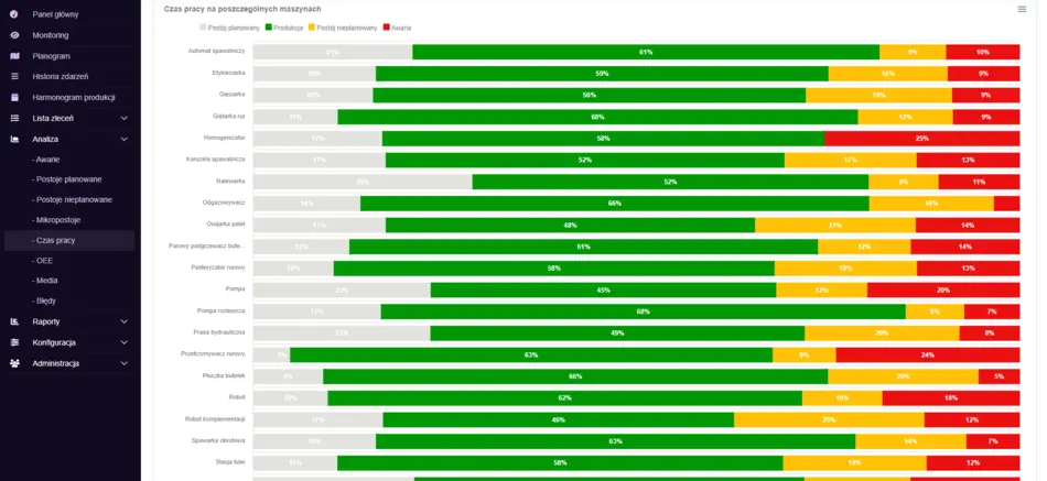 - Moduł Analizy: Głęboka analiza przyczyn postojów i awarii maszyn, umożliwiająca skuteczne zarządzanie produkcją.
